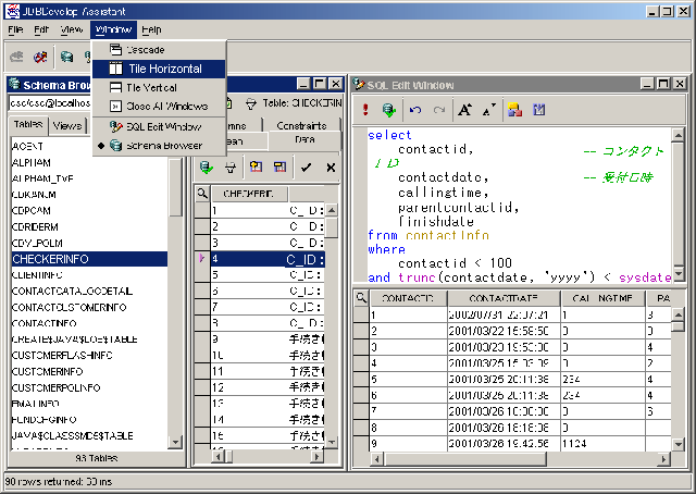 | JDBDevelop Assistantはマルチデータベース対応のGUISQL管理ツール、完全にJavaで開発した、Window、Linux等の環境で実行できます。当該ツールをうまく運用すれば、コーディングの効率と試験の効率を上げることができます。主な機能は以下の通りです: | ||||||||