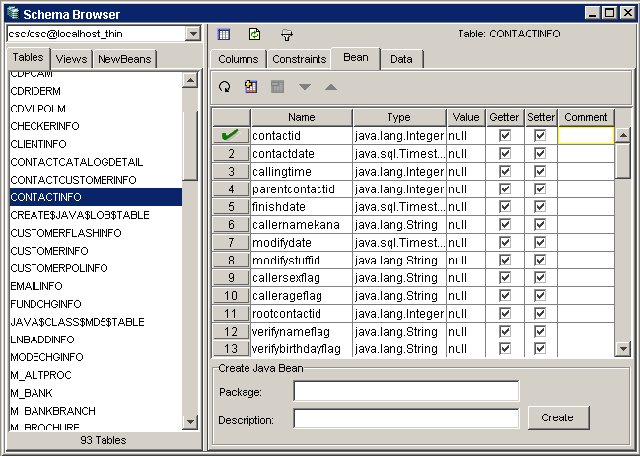 | 図2:コーディング効率を上げるため、JavaBeanの自動作成 | ||||||||