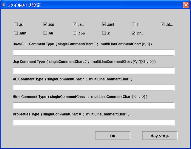 | 図3: ファイルタイプとコメントルールを設定できる | ||||||
