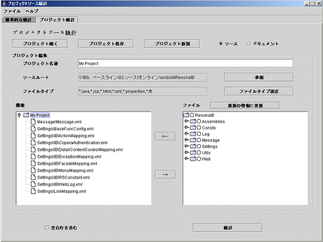 | PPSは自社開発したソースコード集計ツールで、開発管理中に規模集計、予実分析、バグ率集計等によく利用されています。Html、Java、DotNet、VB、VC、C等ソースタイプに対応します。フォルダ指定する簡単な統計とプロジェクト単位でルール設計統計の二つのパターンがあります。主な機能は以下の通りであます。 | ||||||