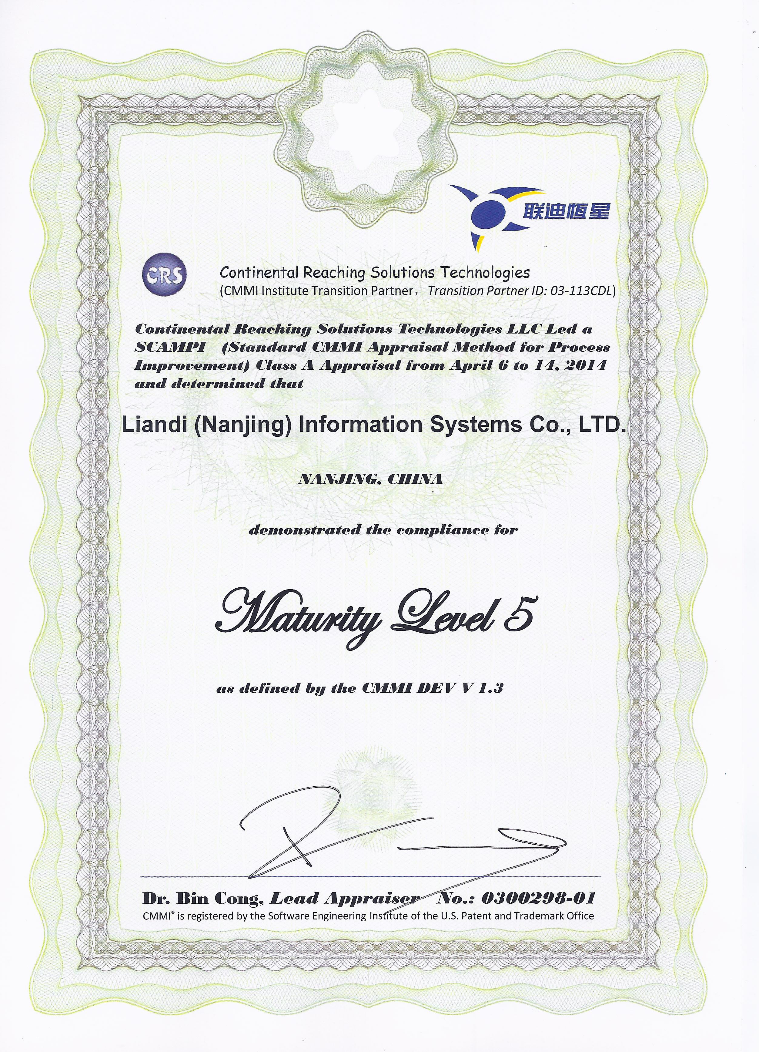 经过联迪恒星公司员工1年多的全力准备,于2014年4月初展开CMMI5正式评估工作。此次评估的对象通过对公司主要类型的项目进行采样确定,评估过程中,评估师带领ATM小组(评估小组)成员访谈了项目经理、BSE、设计人员、开发人员、测试人员、配置管理人员、质量保证人员,还访谈了组织级的培训工作和过程改进工作的相关人员,访谈场次共11场。最后,主任评估师和全体评估成员一致同意,联迪恒星公司通过CMMI5级评估。在评估结果发布会上,美国卡内基-梅隆大学软件工程研究所(SEI)主任评估师向联迪恒星公司总经理沈荣明颁发了CMMI5级证书。