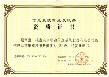 2017年6月26日、コンピュータ情報システム統合及びサービス資質ネットワークの発表により、会社はコンピュータ情報システム統合及びサービス二級資格を獲得した。